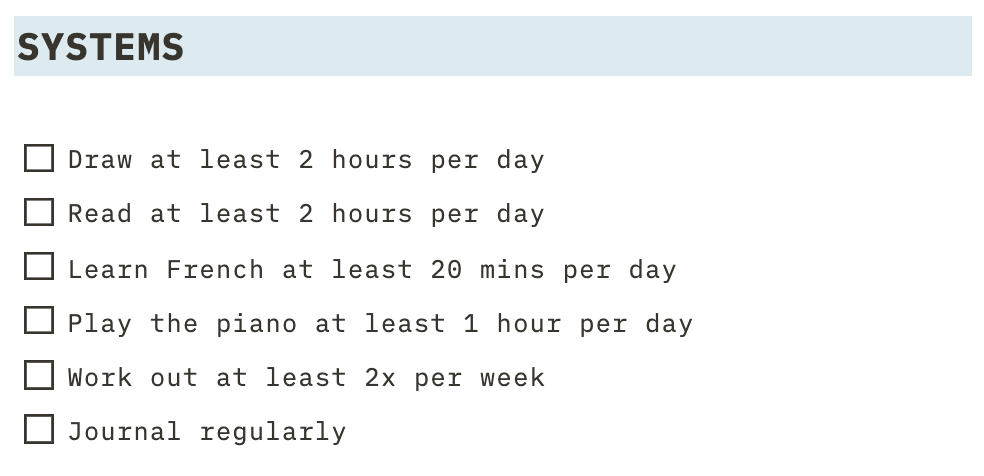 - Focus on systems instead of goals
