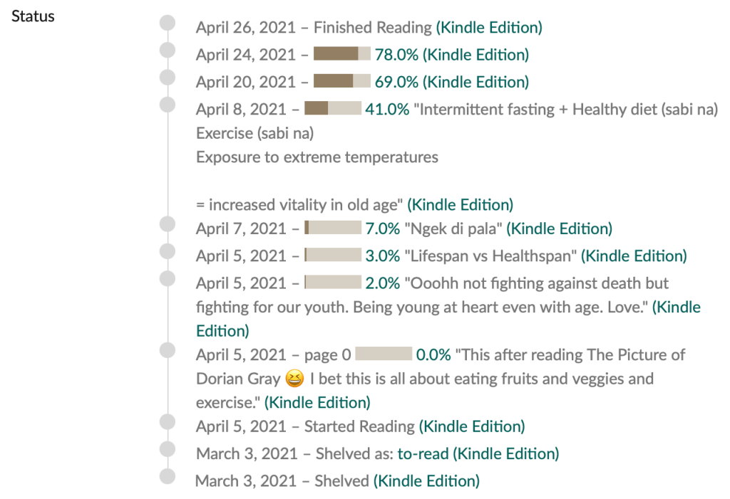 Yung concept na sinasabi nya rin dito sa book, aging daw is a disease. And, the author believes that it is treatable. Hmm 🤔 So yung masasabi ko dito, for the longest time kasi, people see aging as normal and natural. Pero dito sinasabi nya na it’s a disease. Hmm 🤔