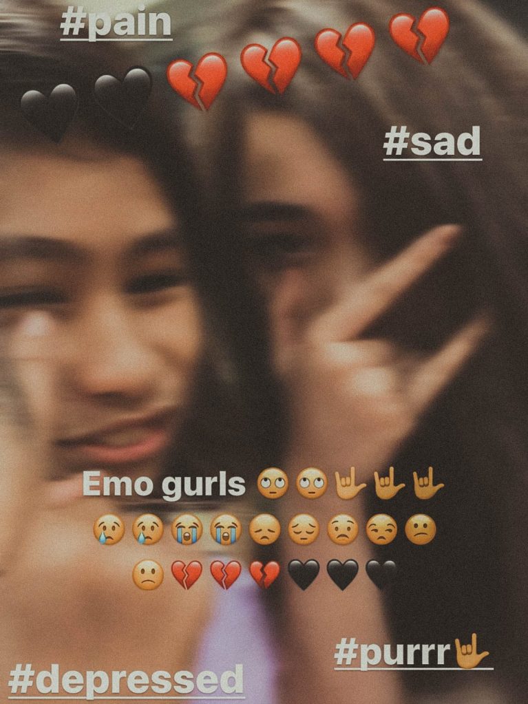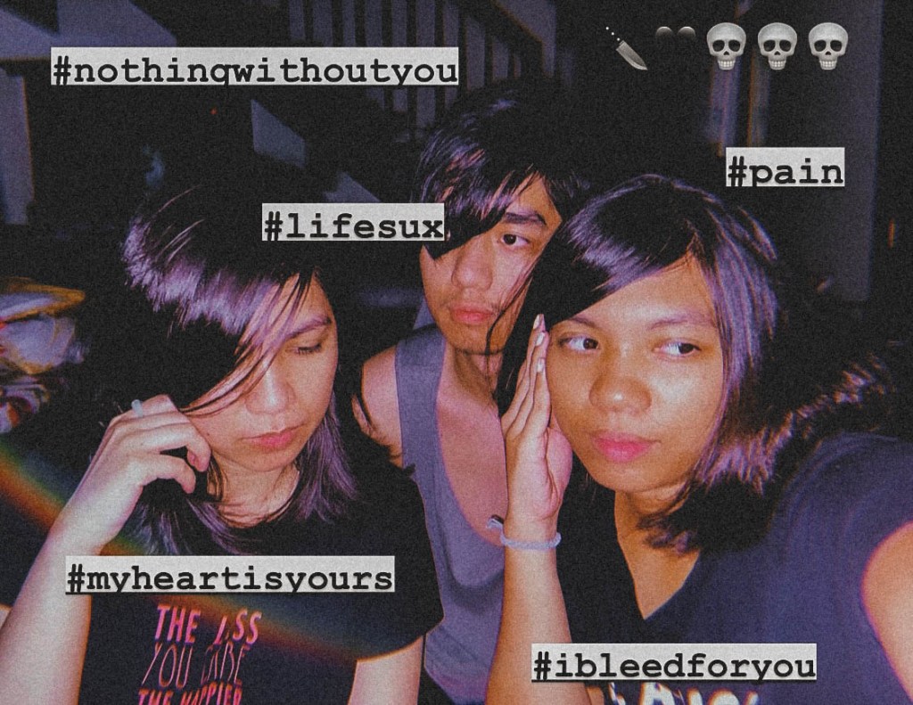 So 4AM na tapos wala na kaming magawa. May nakaisip na gumawa kami ng parody nung emo pic ni Louisa at Gillian: