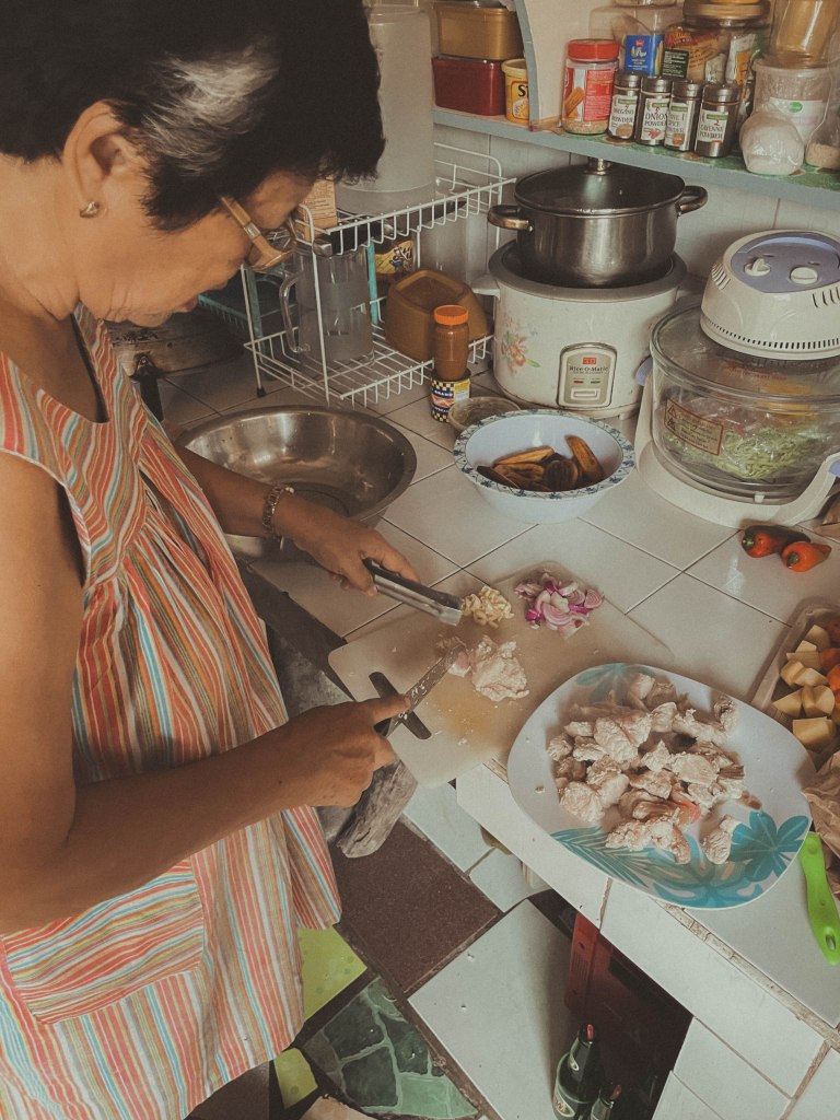 Maya-maya, pumasok na ang Mommy. May comment sya kay Ate Elena, masyado raw malalaki yung gayat ng karne na pang-caldereta. Kaya tinulungan nya si Ate Elena na maggayat. Masarap din magluto ang Mommy 😊