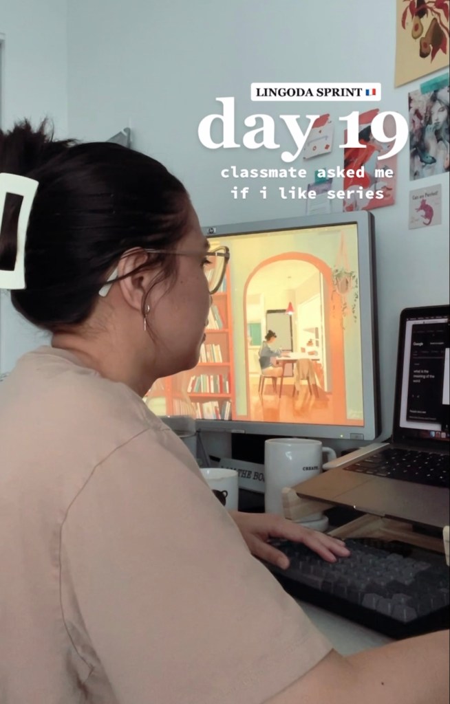 Naka 3 weeks and 1 day na kong nagte-take ng classes. In terms of progress, yung pag-iintroduce ng sarili super easy na sakin kasi araw-araw naming ginagawa. Kaya ko na rin mag-construct ng very simple sentences tulad ng, “I have cats.” “I work for 2 hours.” “I’m an illustrator.” or “I like chocolates.” Pero yung, “I wake up at 8AM and then I’m going to do yoga. After that, I will take a shower then cook our lunch…” Hindi pa. Kaya ko siguro pero mali-mali at kulang-kulang.