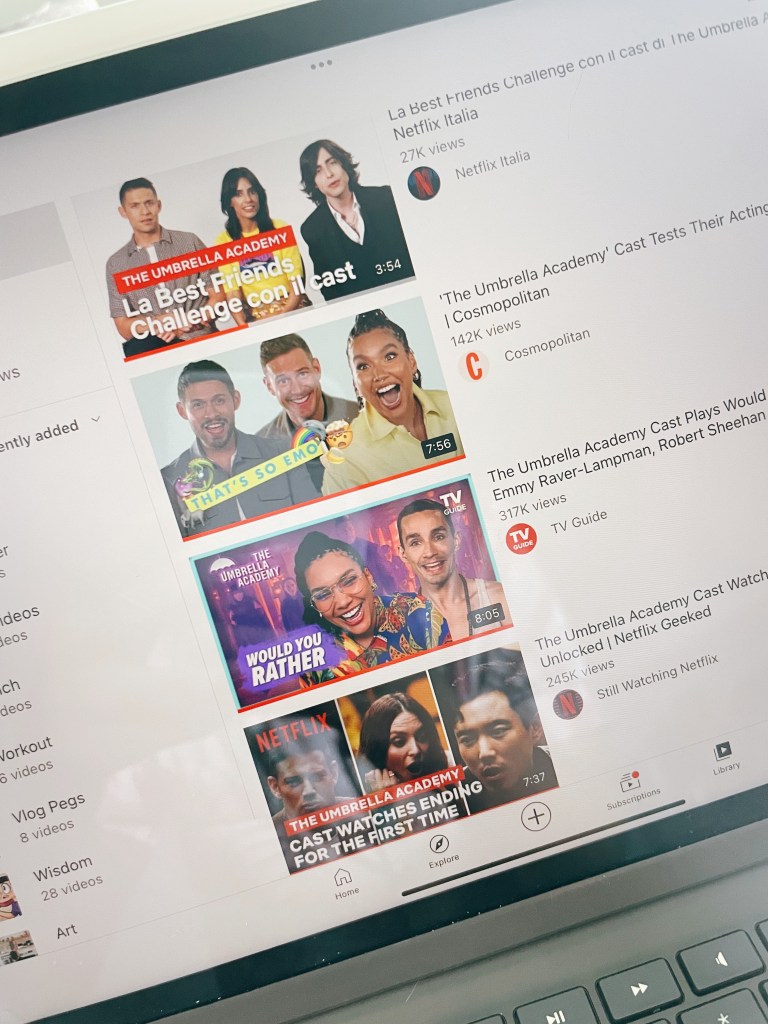 Le soir, mon mari et moi avons regardé le serie ‘Umbrella Academy’. It was vraiment bien. Nous avons regardé beacoup des ‘Umbrella Academy’ interviews après. Je suis excited pour la prochaine season!