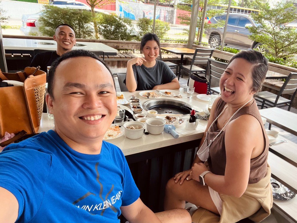 Since same place lang yung meeting place naming magkakapatid (my idea, para efficient 😄), hindi na ko umalis kasi parating na rin ang Kuya. Ang kuya ang nag-akit (nagyaya) na lumabas kaming apat. Tapos since first time nga ‘to mangyari, kinukulit kami ng Mama. China-chat kami isa isa. Mag-picture daw kami ng marami. Since gusto kong surahin (asarin) ang Mama, sabi ko mag-picture kami ng hindi nakaharap sa camera.