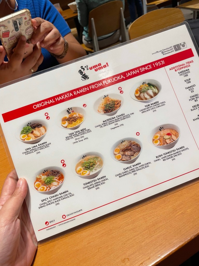 Pero sa kadahilanang ang dami ngang tao sa MOA, naisip namin na bumalik sa Conrad at dun na lang tumambay. Sabi ko okay lang kahit hindi na ramen, basta kumain na lang kami ng dinner kung anong meron dito. Tapos nakita ni Tricia na may ramen place pala! Uma Uma yung name at parang narinig ko na sya before. Although hindi ko alam kung masarap.