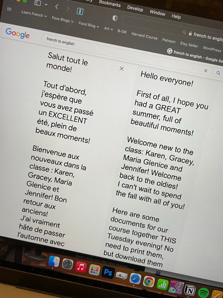 I was busy journaling at hindi ko in-expect na makatanggap ng e-mail from our French teacher at 9:30PM. Akala ko mga rules for tomorrow pero welcome message pala sya and super na-excite ako lalo. She seems nice. Syempre hindi ko lahat naintindihan yung sinabi nya sa e-mail so I needed help from Google translate.