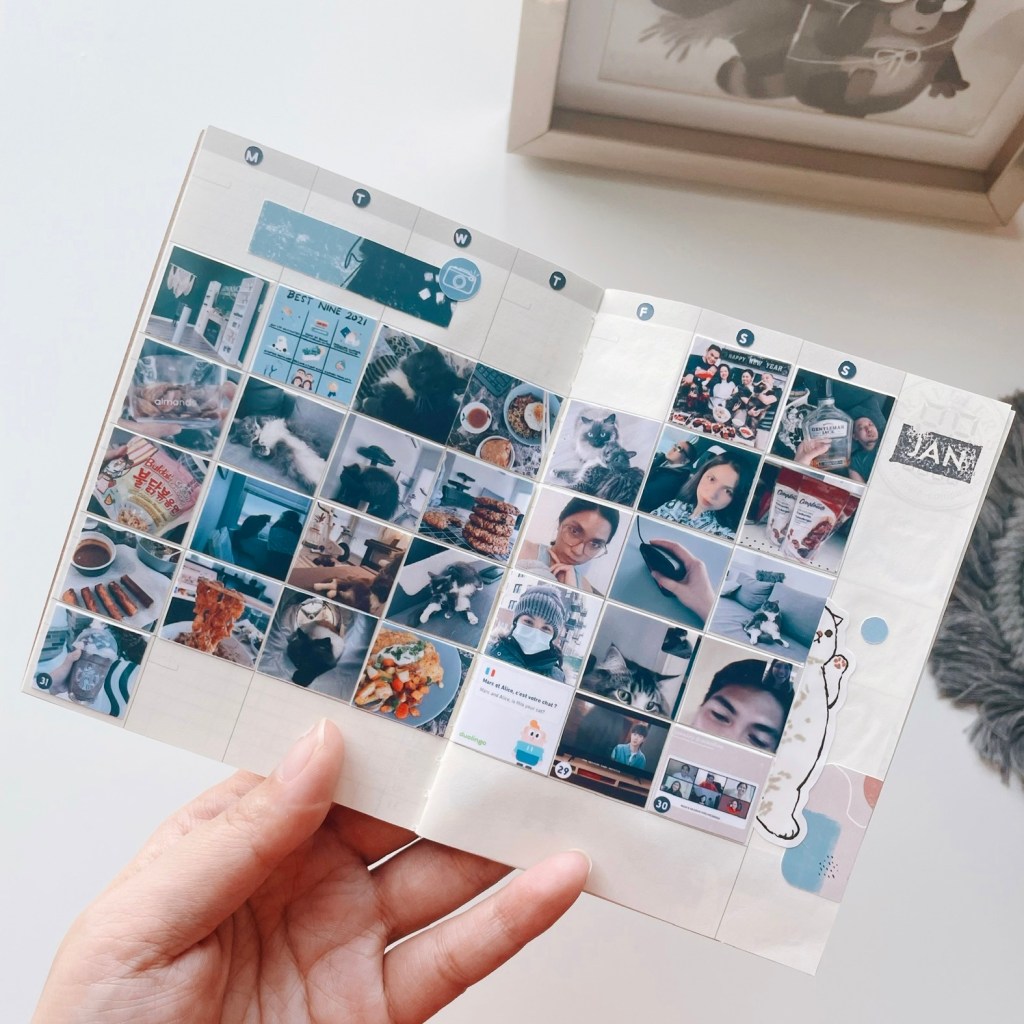 This started with the ‘Day One’ app and it was supposed to be purely digital. But when I saw this monthly planner, I thought it would be fun to have the daily photos printed and keep them in this notebook. I’m picturing myself having these little notebooks in the future representing each year. Cute 😍