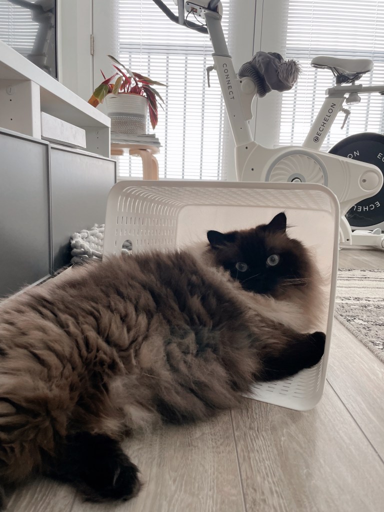 Nag-scoop ng litter, nag-vacuum, naligo at ngayon, kumakain ng tirang caldereta habang nanonood ng Raising Hope. Medyo relax ako sa pagluluto nitong mga nakaraang araw kasi nung weekend, bumili kami ng apat na potahe at nilagay ko sila sa freezer. May bicol express, binagoongan at lechon paksiw. So pag time nang kainin, ide-defrost ko na lang at ima-microwave. Sobrang convenient at stress-free. Kaya ganun ulit ang gagawin namin next week.