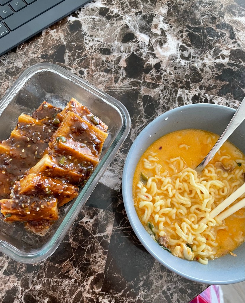 Naligo, nag-vacuum, nag-ayos ng hugasin, nag-scoop ng cat poop, at ngayon, kakain habang nanonood ng Raising Hope.