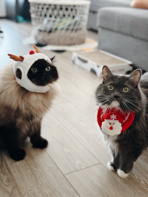 - The kitties on their Christmas costumes