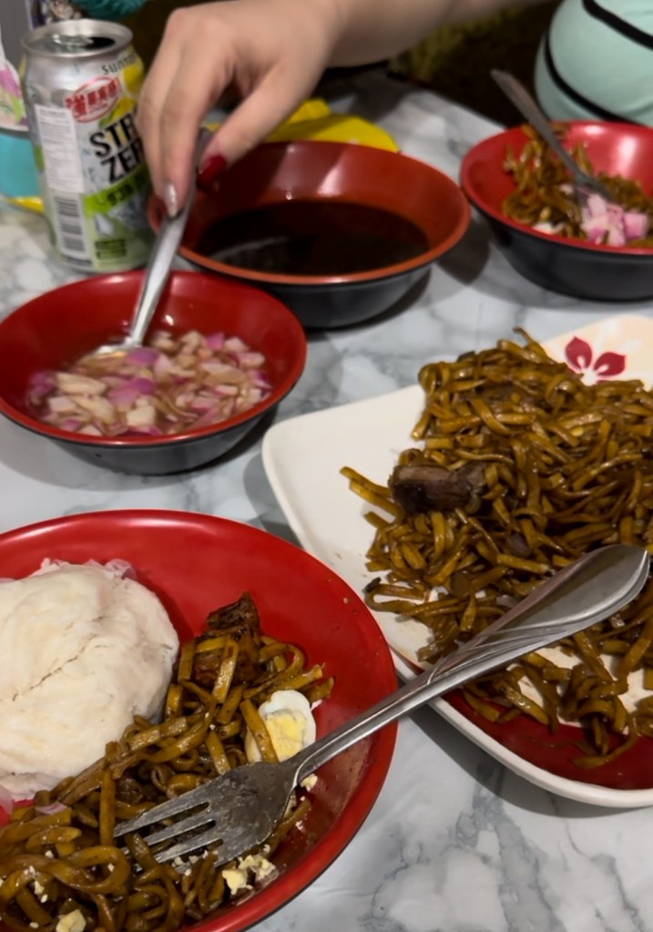 Nung nasa poder pa ko ng mga magulang ko, madalas kong paalam sa bahay ay, “Pupunta ako kina Dimpol.” Kaya natuwa ako na pupunta uli ako kina Dimpol para tumambay at kumain at magchismisan. As promised, pinakain nya ko nung pinost nya sa Instagram na French baguette with tahong in garlic olive oil—limot ko na yung tawag basta masarap. Kumain rin kami ng chami na tamis anghang with chinicharong baboy at siopao. Sarap!