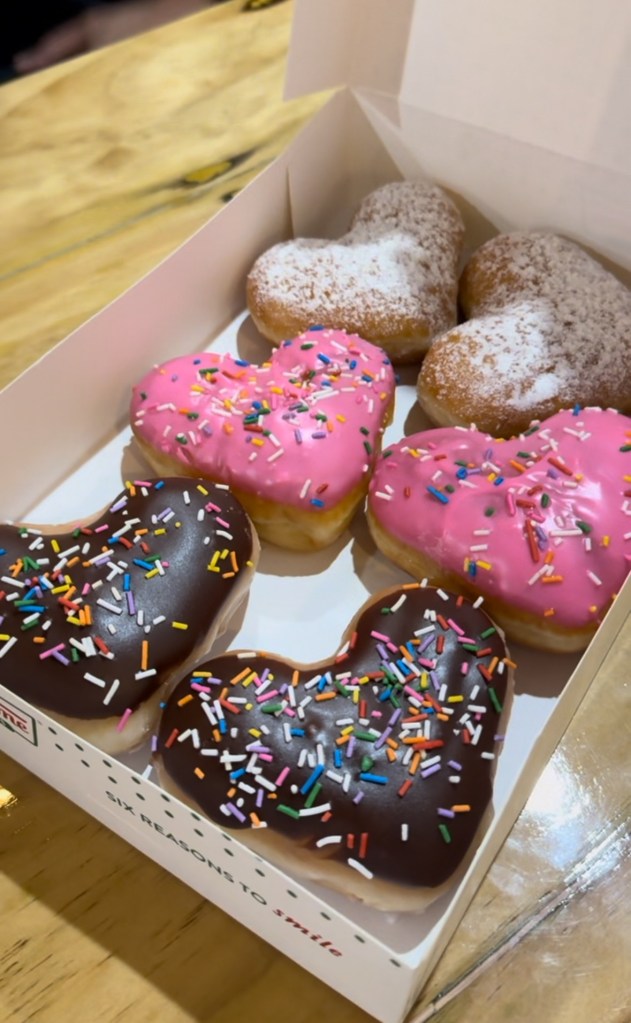 - Met with friends na wala ring ka-date ngayong Valentine’s Day. May pa-Valentine’s gift pa samin si Bong na Krispy Kreme heart-shaped donuts.