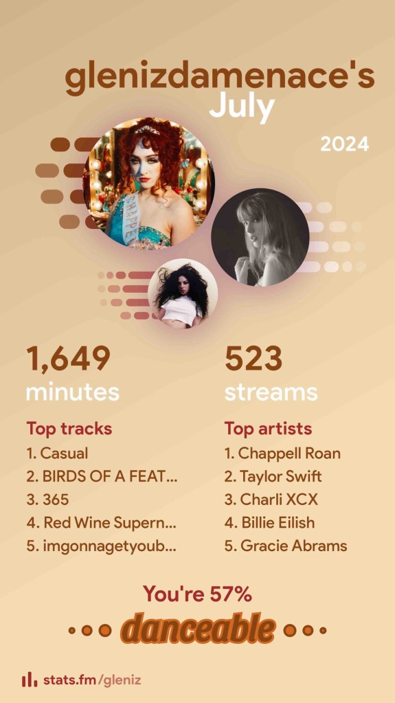 I’m fresh! Kakatapos ko lang maligo. Nag-scoop na rin ako ng litter, nag-vacuum, nag-load ng dishwasher, at nag-skin care. Ngayon nakaupo ako sa desk ko habang nakikinig ng Chappell Roan, ready to do the Diaz Mansion’s July expense report.