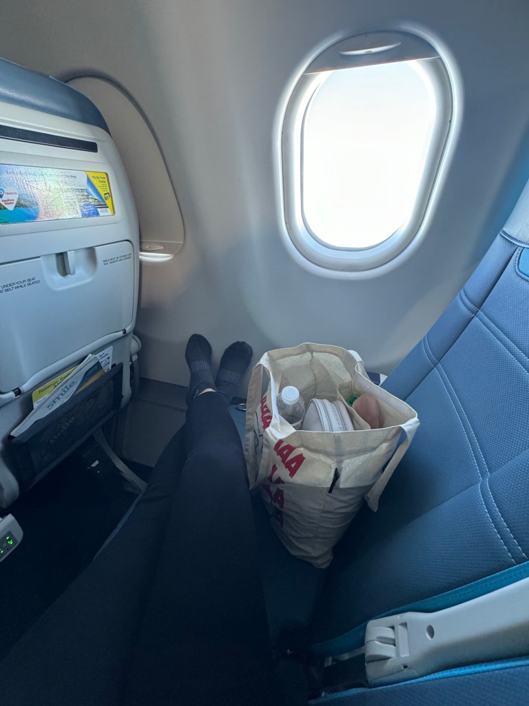 Hindi ko sila katabi sa eroplano kasi nagkahiwalay kami ng pila. Pero okay lang kasi wala akong katabing stranger. Feeling business class yung pagtaas ko ng paa.