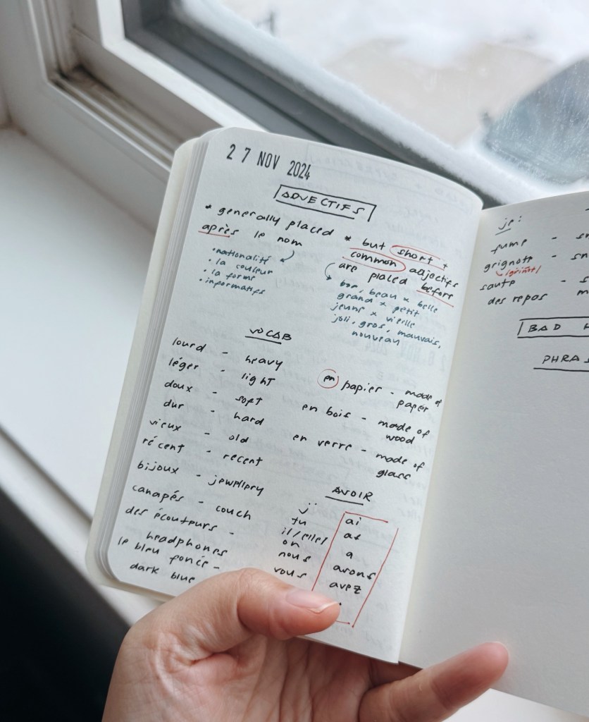I’ve been learning French on and off for about 2+ years now. Personally, the most effective way of learning is through live classes—I tried Duolingo and it’s not for me. There was a year where I didn’t take any classes at all because of work, and I noticed that my French is getting weaker and weaker. I really need to speak it regularly or else, I’ll lose it. That’s why I’m happy to be back and make progress again!
