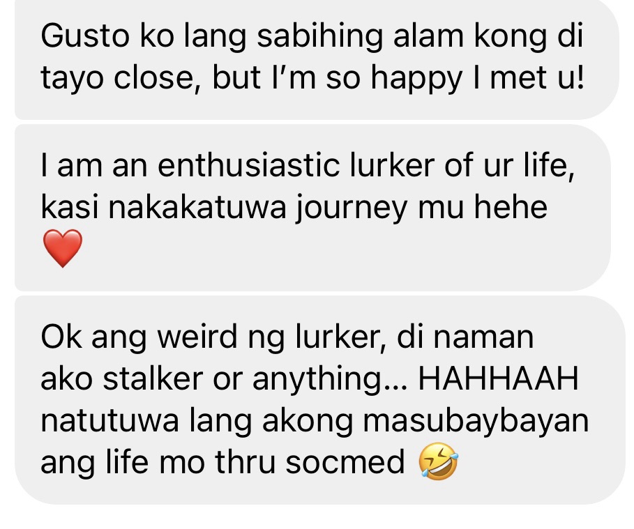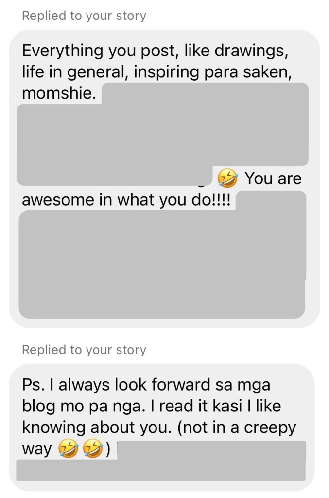 And thinking about these 9 messages, I believe it’s true. They are enough to last me a lifetime. So once again, thank you for filling this little pocket with your kind and generous words. I’d imagine Kenneth would be grateful too, kasi nagawa nyo ang hindi nya kayang ma-accomplish. I don’t say this with bitterness. I’ve come to learn that we musn’t expect everything from our partner. We all have our own different strengths, and this just isn’t his. And I’m okay with that. Thank you! 🤍