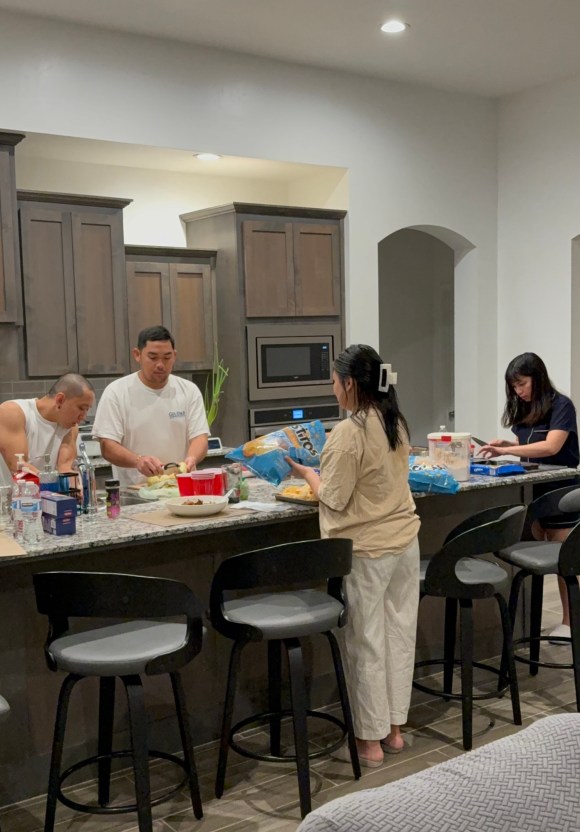 Kenneth was cooking steak, Boris was making pasta and mashed potatoes, Bea was assembling nachos, and I was baking Oreo cheesecake cookies—all while Benson yells, “C’mon guys! One and a half hours left!” (He’d end up washing the mountain of dishes later since he wasn’t able to contribute to the cooking aspect of things 😆)