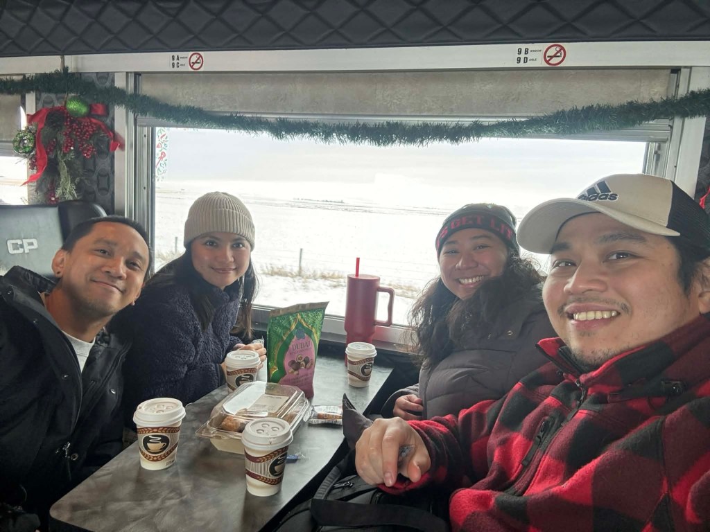 Although it was freezing that day, I didn’t wear my winter jacket because I thought we’d be inside the train most of the time. Since it was my first time, I had no idea that before we can board the train, there would be a band performing outside first. I could still tolerate the cold despite being underdressed, but what I really couldn’t take was standing in the snow. My feet were freezing! Feeling ko talaga magkaka-frostbite na ko. I really just wanted the band to wrap up so we could get inside the train already and feel some needed warmth.