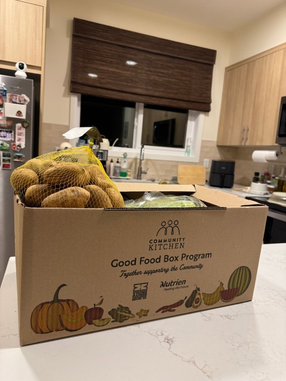 After weeks of waiting (kasi once a month lang sya available), finally na-pickup na namin sya last Friday. This community program called ‘Good Food Box’ is volunteer led. May isang ‘depot coordinator’ kung saan ide-deliver sa kanya yung mga boxes on a specific date, tapos kaming mga nag-order, pupunta sa bahay nya para i-pickup. Sadly, may announcement si depot coordinator na hanggang April na lang daw sya magvo-volunteer.
