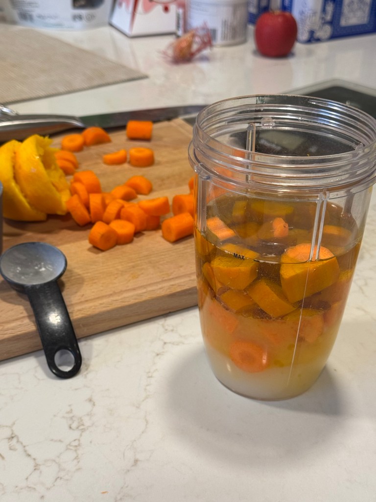 Ang perfect na may kasamang orange dun sa box kasi finally, magagawa ko na yung orange-carrot olive oil cake na naka-save sa recipe box ko. Tatlong carrots agad yung nabawas nung ginawa ko ‘tong recipe. At since hindi ako mahilig kumain ng orange (nakakatamad kasi syang kainin), natuwa rin ako na nabawasan ng isa yung oranges.