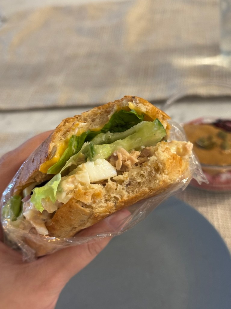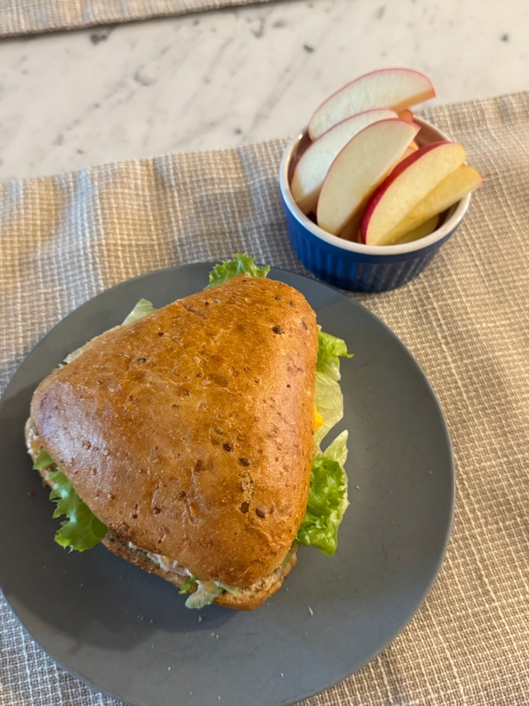 Ang next sa menu ko ay embutido. Hindi masyadong nabawasan yung mga gulay dito kasi meron pa kaming stock ng sibuyas at lara. Pero nabawasan ulit yung carrots. Ang kasunod kong ginawa ay tuna egg salad sandwich (with sliced apples for dessert) para magamit ko yung tirang crushed pineapple from the embutido, plus magagamit ko rin yung celery, cucumbers, at lettuce. Saya!